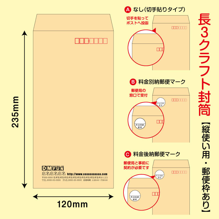 長3封筒(クラフト)|縦使い用郵便枠あり