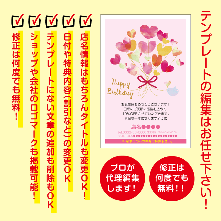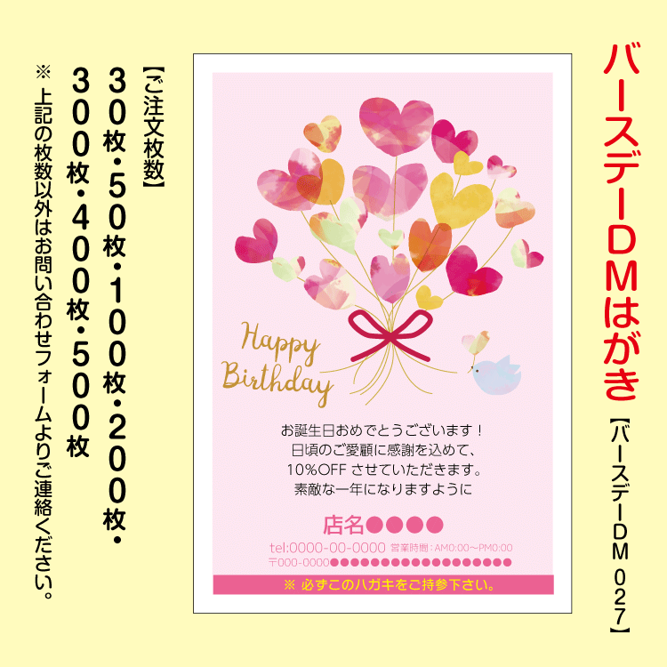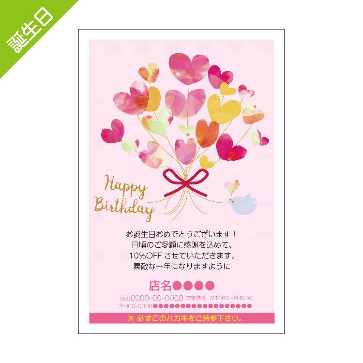大切なお客様へお誕生日をお祝いするバースデーDMはがき。