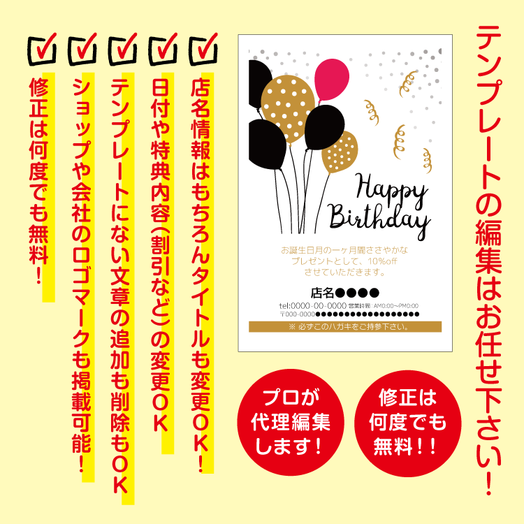 大切なお客様へお誕生日をお祝いするバースデーDMはがき。