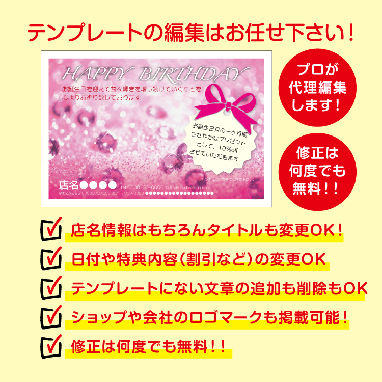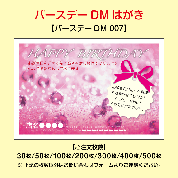 大切なお客様へお誕生日をお祝いするバースデーDMはがき。