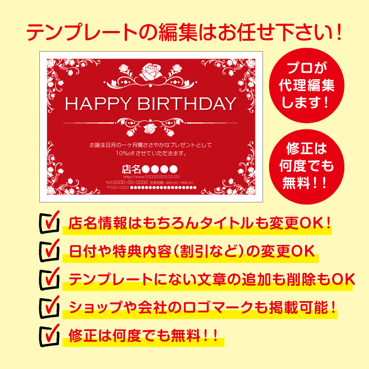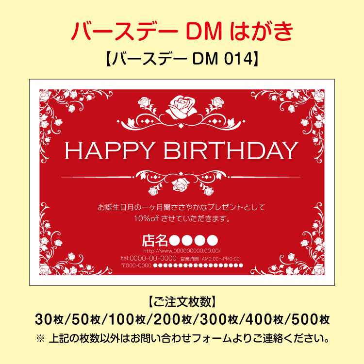 大切なお客様へお誕生日をお祝いするバースデーDMはがき。