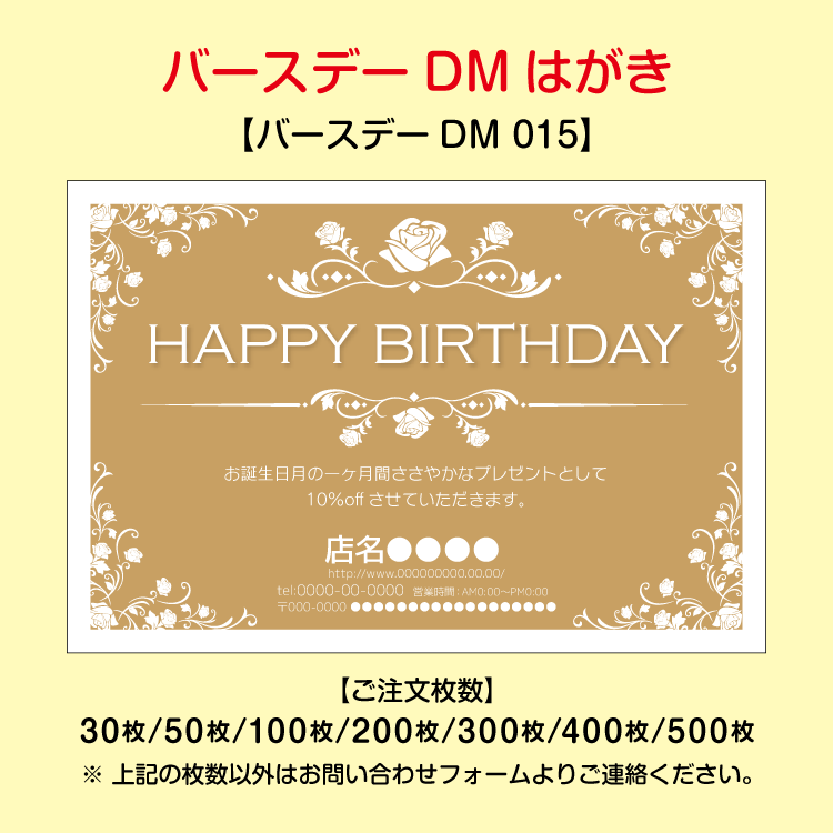 大切なお客様へお誕生日をお祝いするバースデーDMはがき。