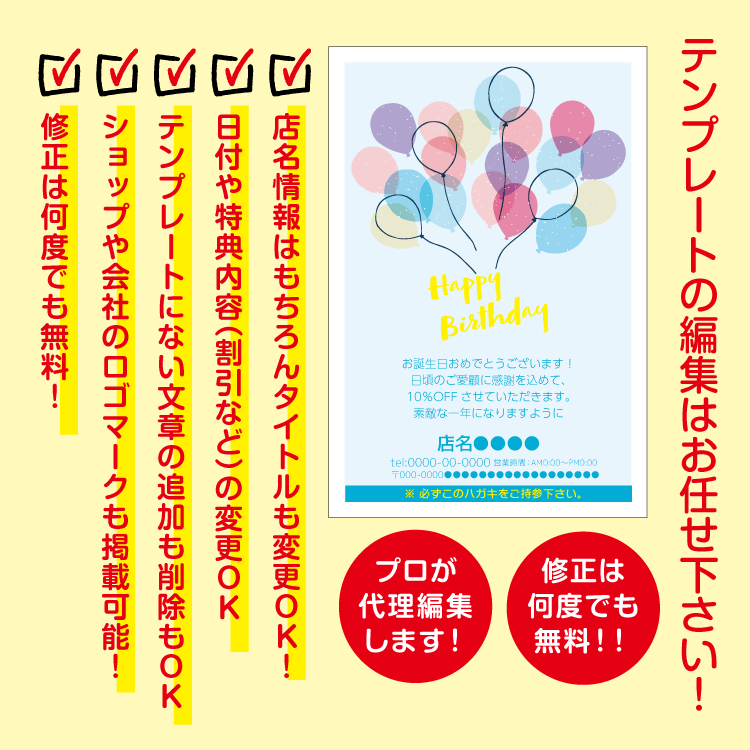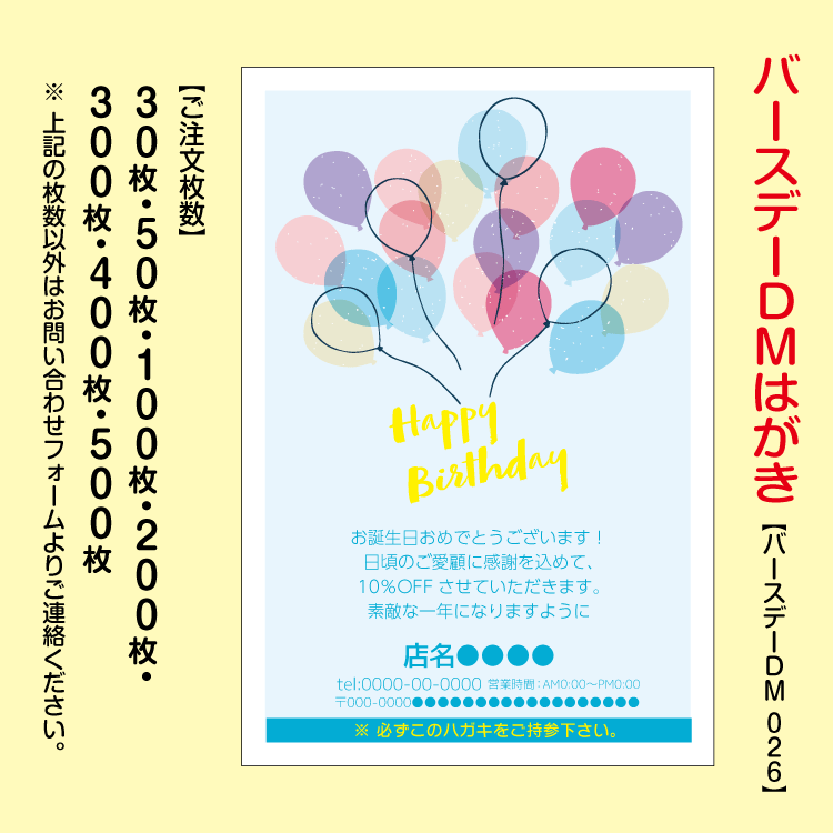 大切なお客様へお誕生日をお祝いするバースデーDMはがき。