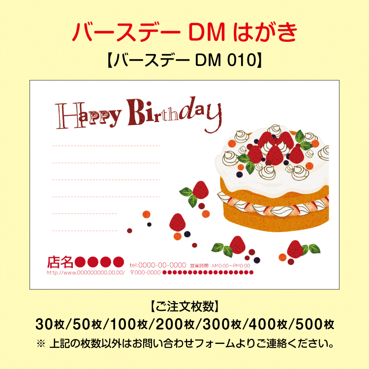 大切なお客様へお誕生日をお祝いするバースデーDMはがき。