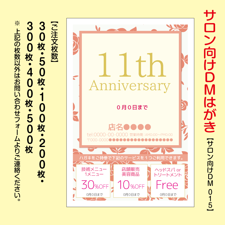 周年祭やサンキューDM、サマーセールなどタイトルは自由に変更可能です。